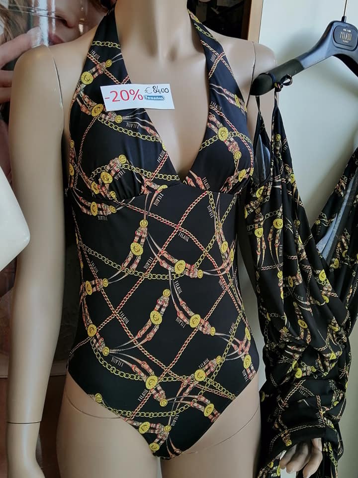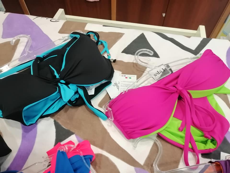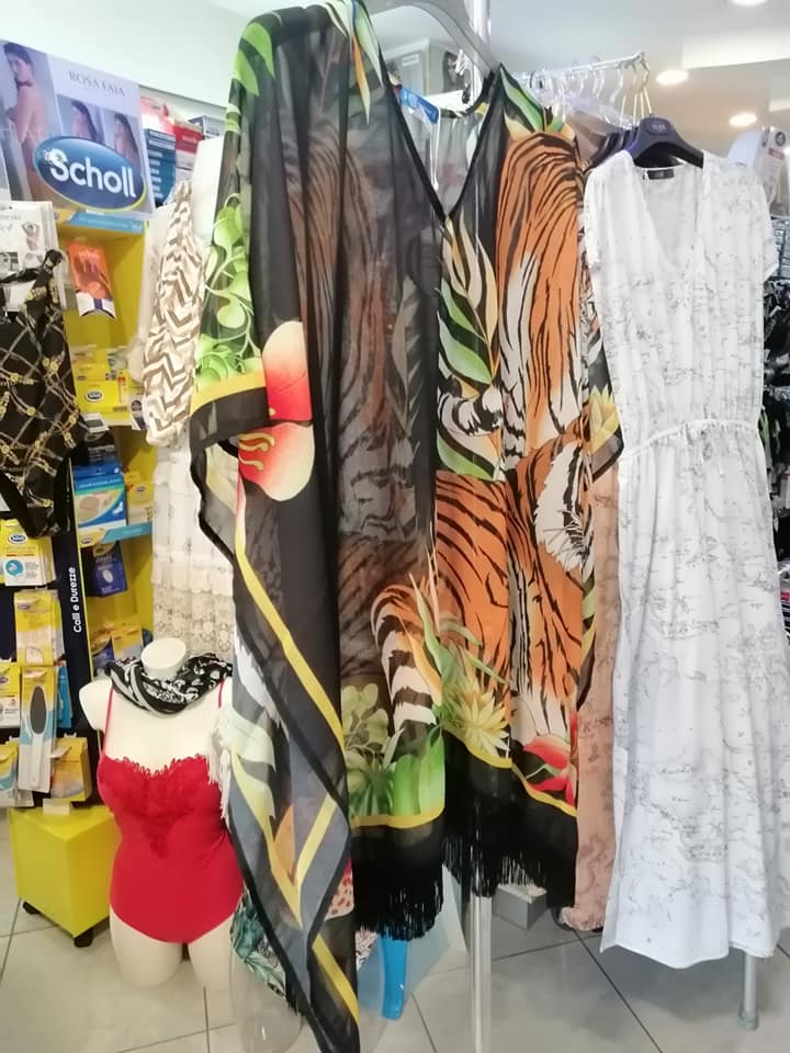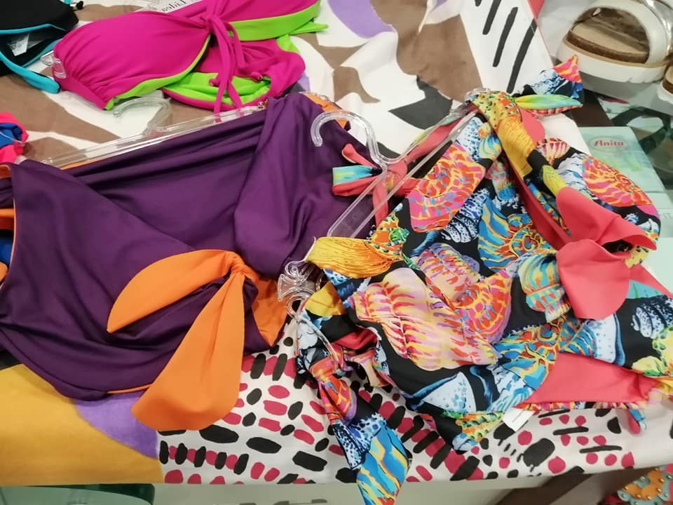 Il negozio infatti ha un'ampia gamma di costumi da bagno e accessori per il mare come parei, borse, copri costume ecc.